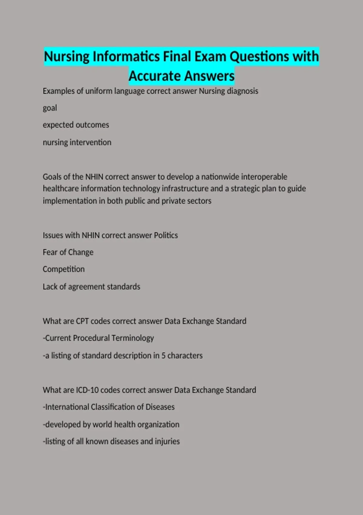 Examples of uniform language correct answer Nursing diagnosis