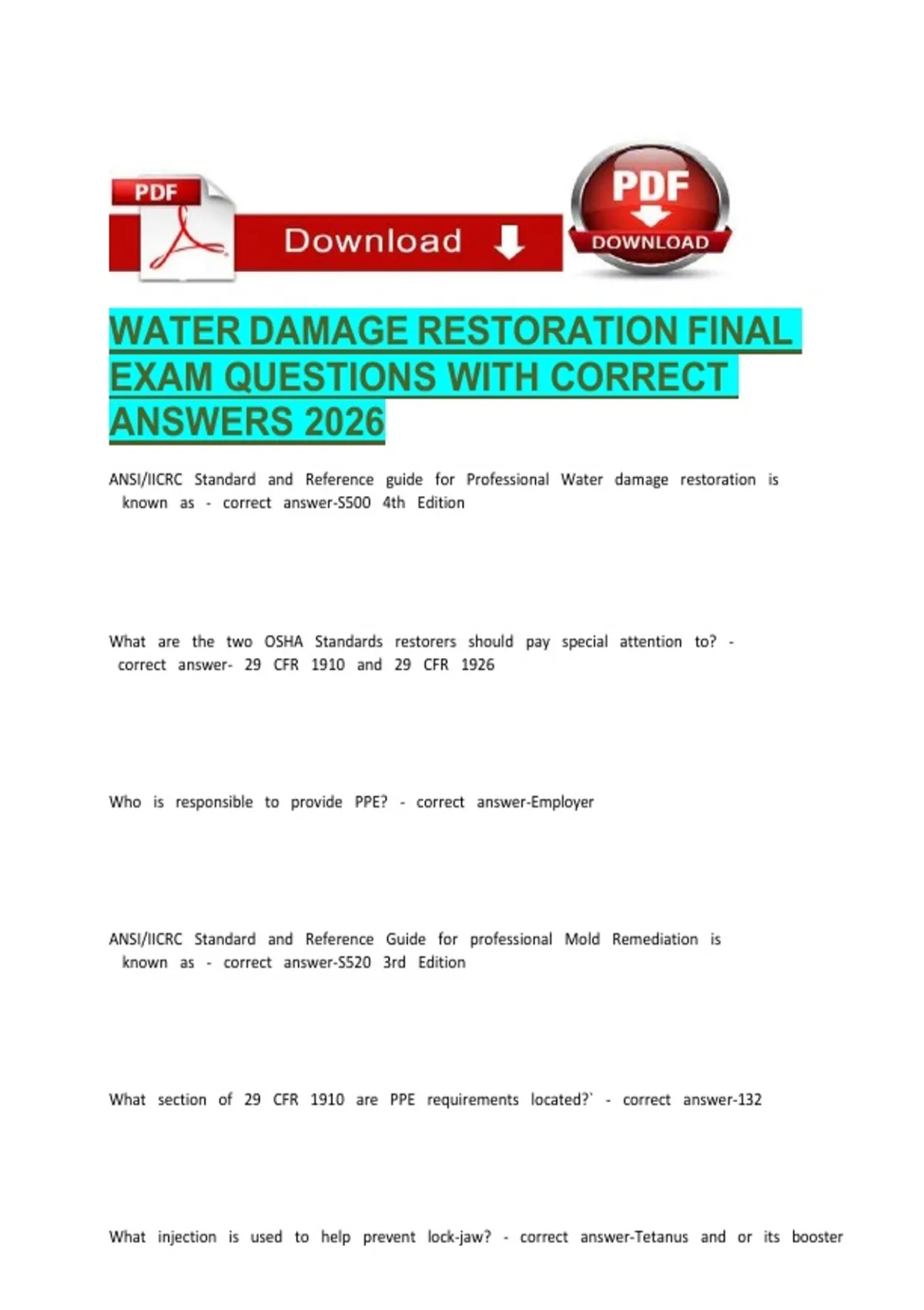 WATER DAMAGE RESTORATION FINAL EXAM QUESTIONS WITH CORRECT ANSWERS 2026