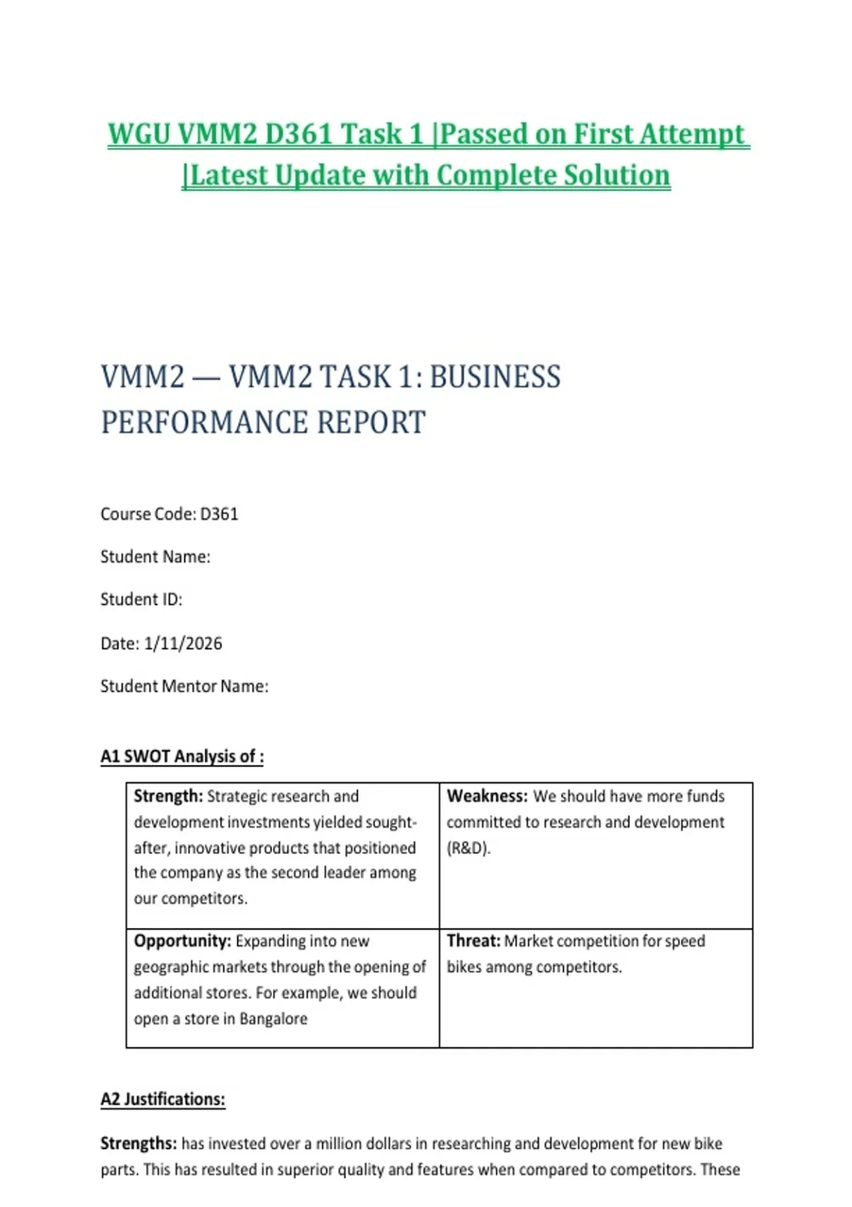 WGU VMM2 D361 Task 1 |Passed on First Attempt |Latest Update with Complete Solution
