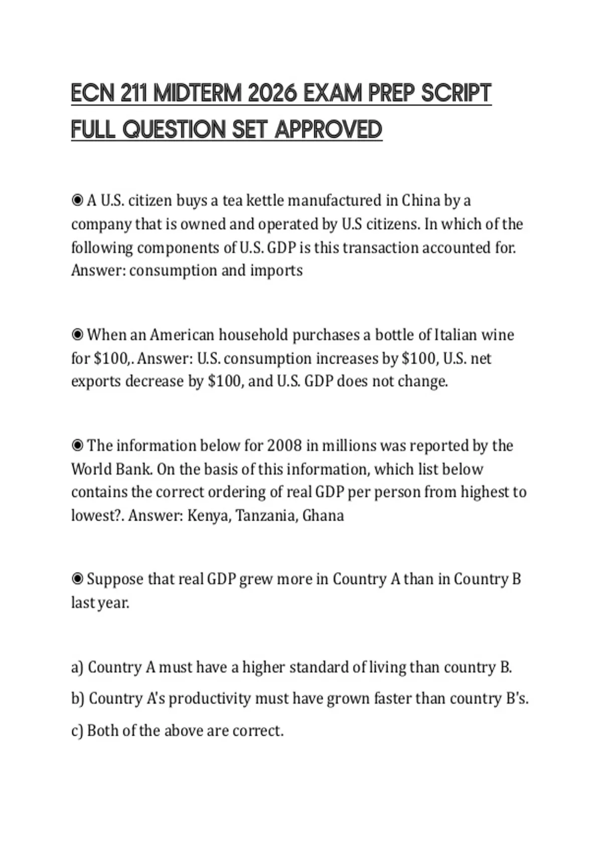 ◉ Suppose that real GDP grew more in Country A than in Country B