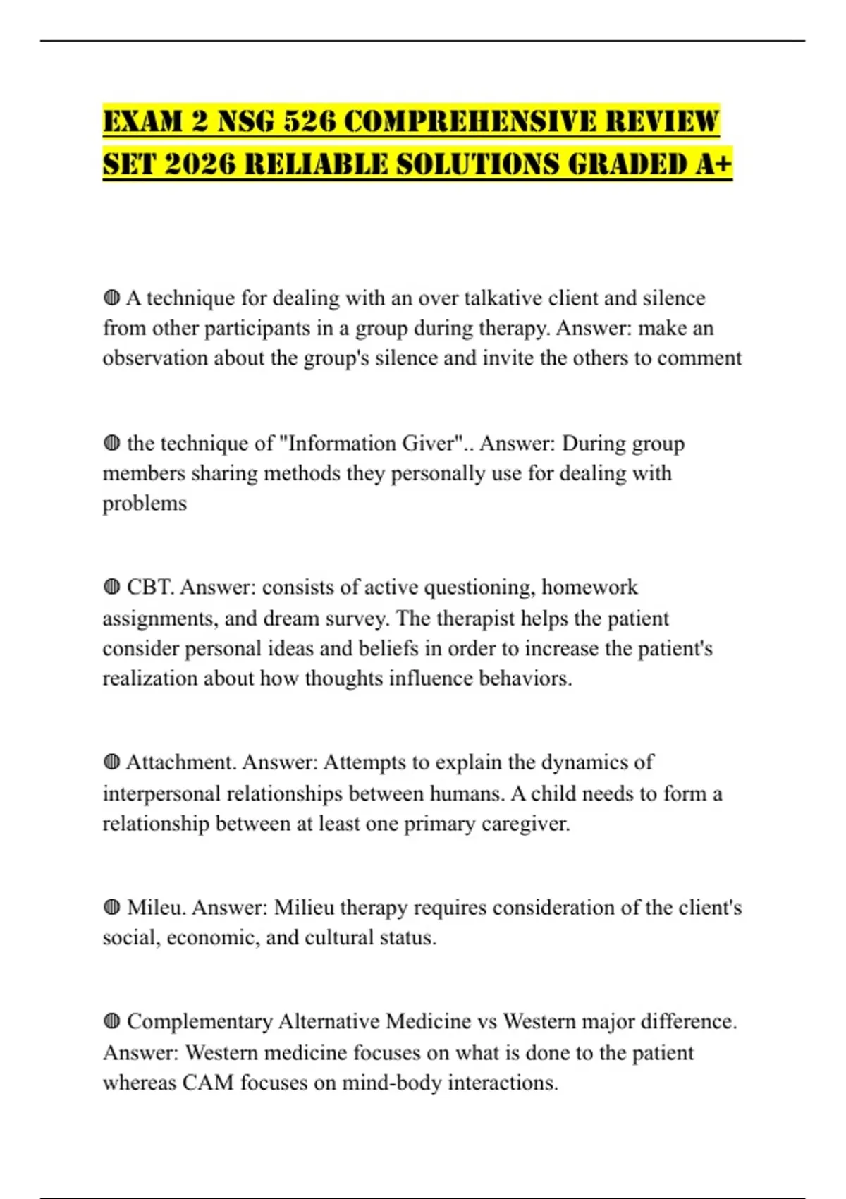 EXAM 2 NSG 526 COMPREHENSIVE REVIEW SET 2026 RELIABLE SOLUTIONS GRADED A+