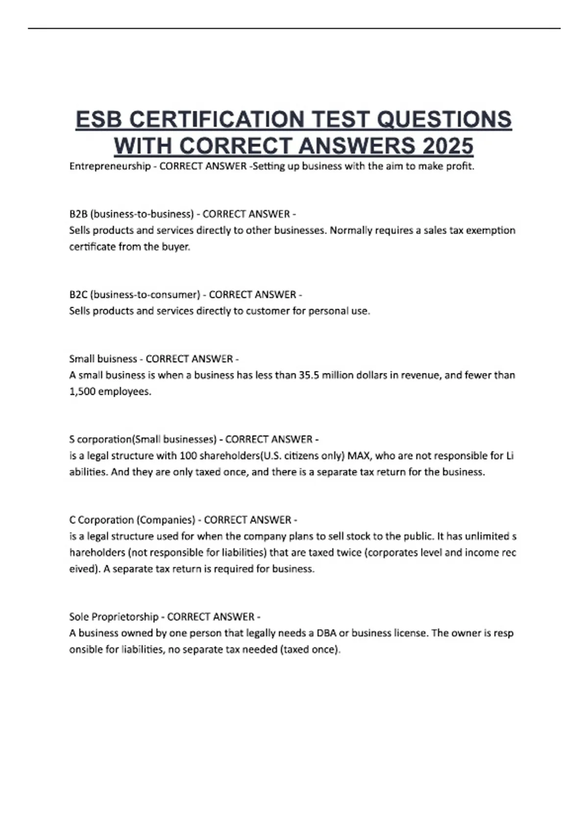 ESB CERTIFICATION TEST QUESTIONS WITH CORRECT ANSWERS