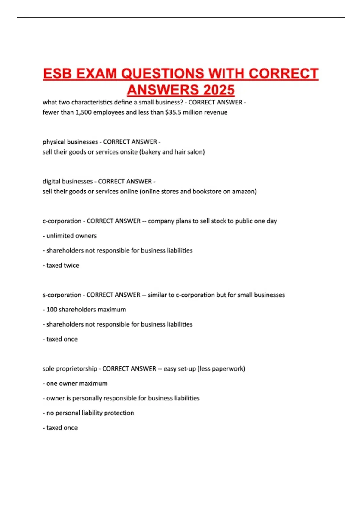 ESB EXAM QUESTIONS WITH CORRECT ANSWERS