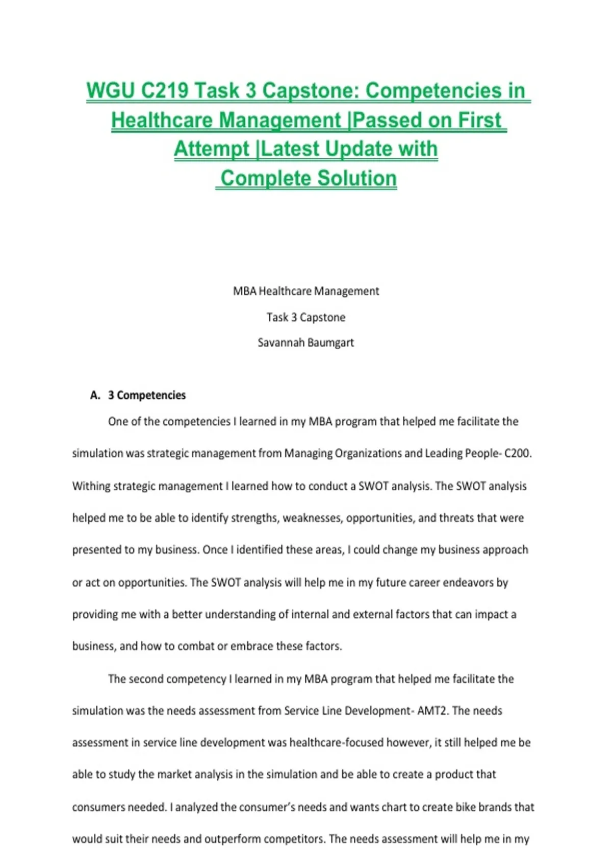 WGU C219 Task 3 Capstone: Competencies in Healthcare Management |Passed on First Attempt |Latest Update with Complete Solution