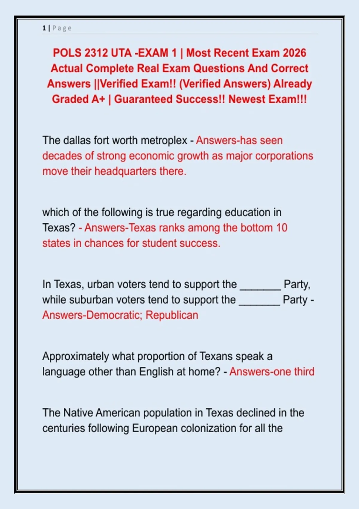 POLS 2312 UTA -EXAM 1 | Most Recent Exam 2026