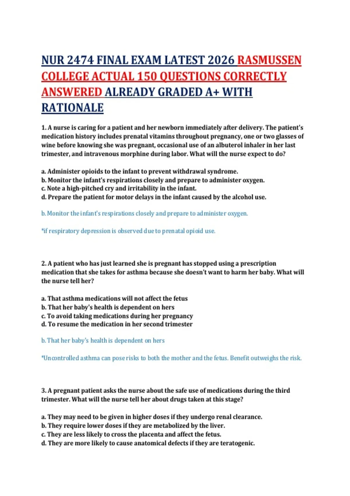 NUR 2474 FINAL EXAM LATEST 2026 RASMUSSEN