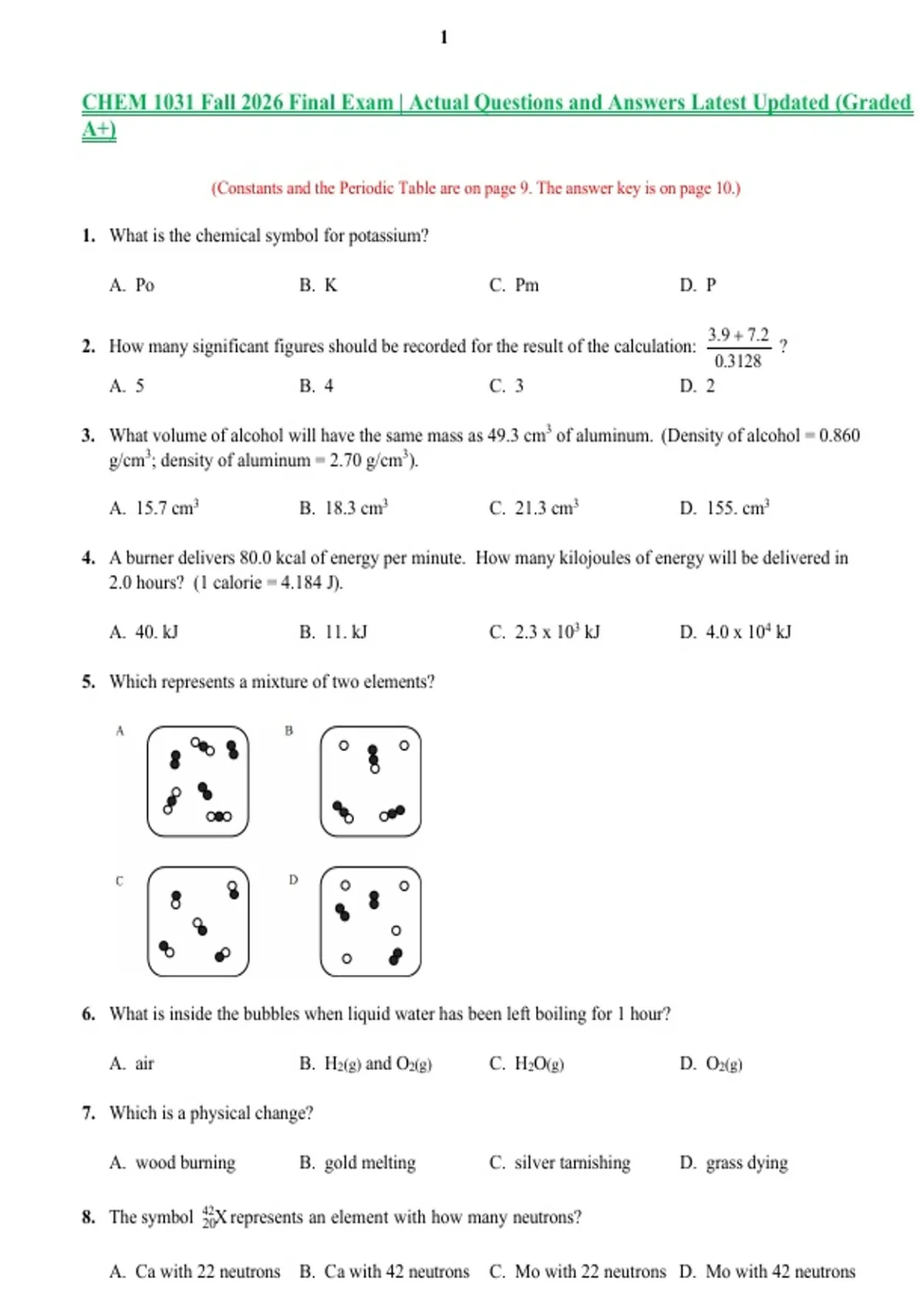 CHEM 1031 Fall 2026 Final Exam | Actual Questions and Answers Latest Updated (Graded