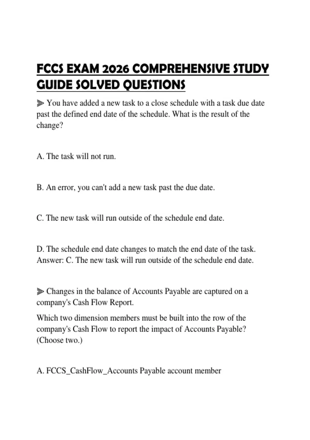 FCCS EXAM 2026 COMPREHENSIVE STUDY GUIDE SOLVED QUESTIONS