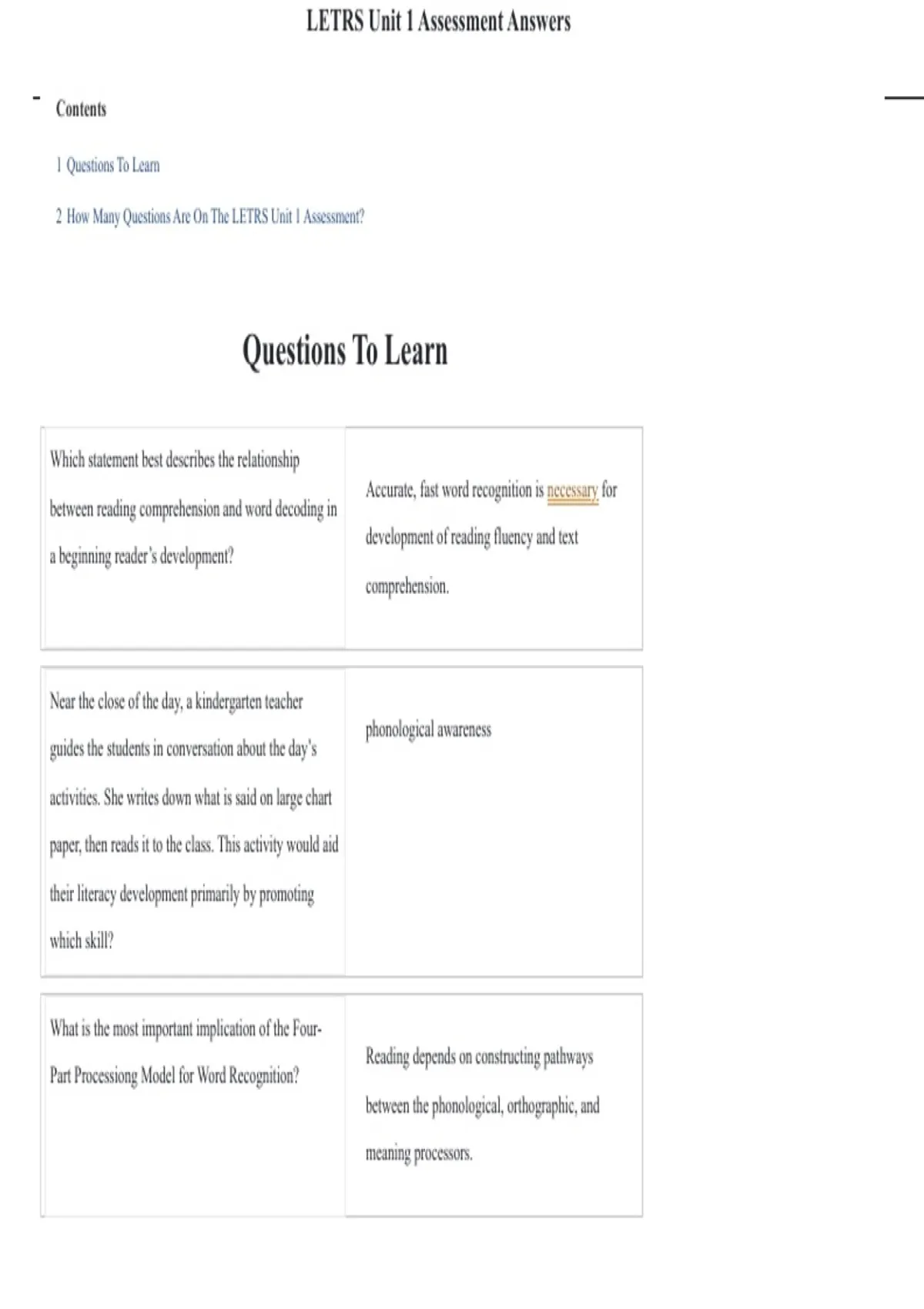 2 How Many Questions Are On The LETRS Unit 1 Assessment?