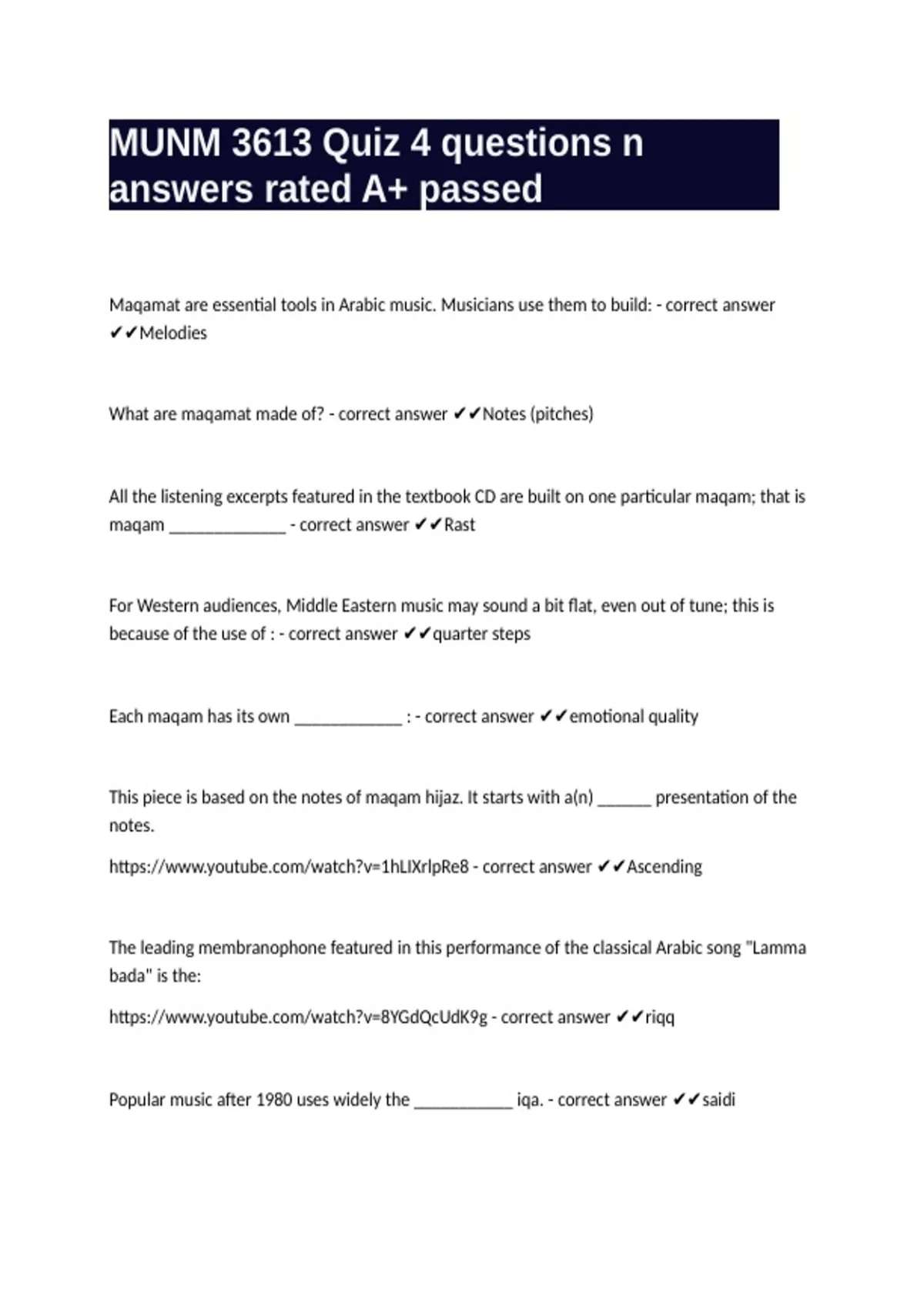MUNM 3613 Quiz 4 questions n answers rated A+ passed