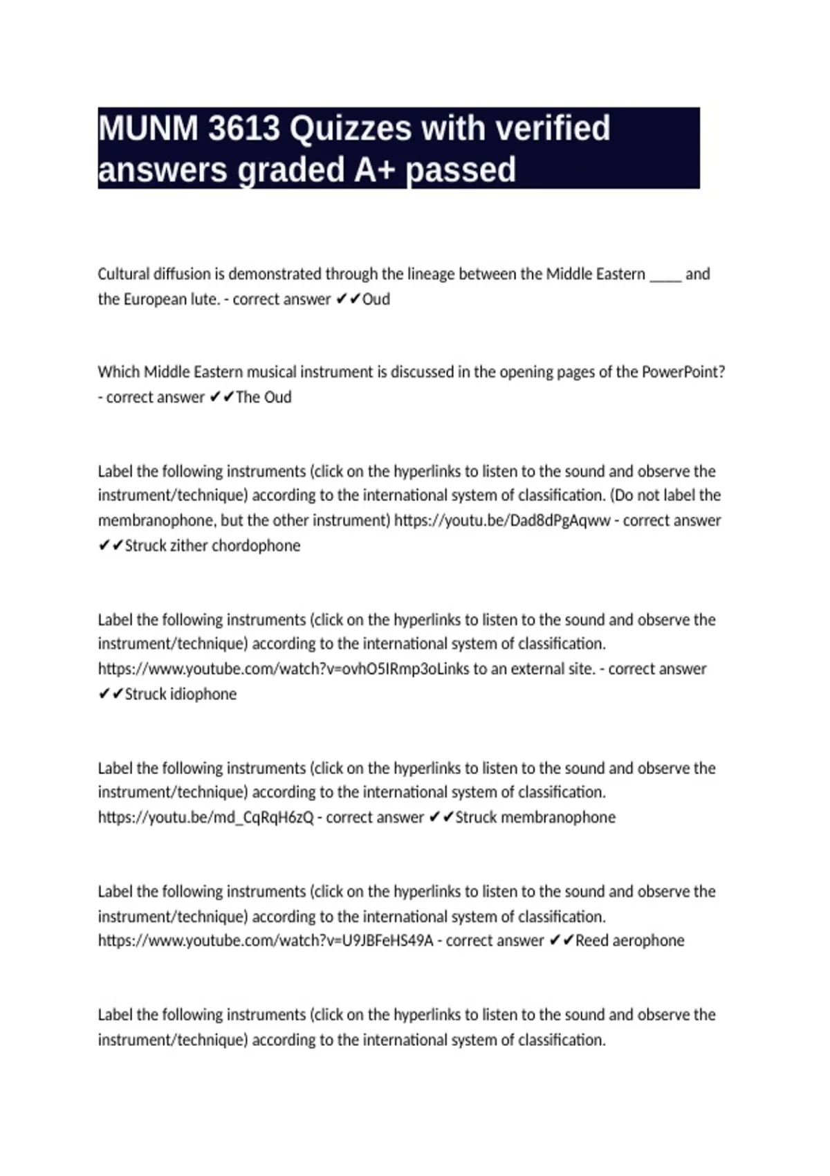 MUNM 3613 Quizzes with verified