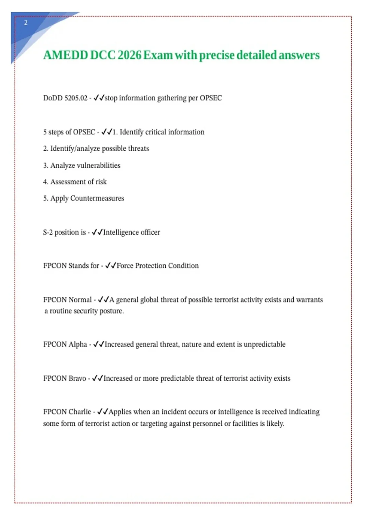 AMEDD DCC 2026 Exam with precise detailed answers