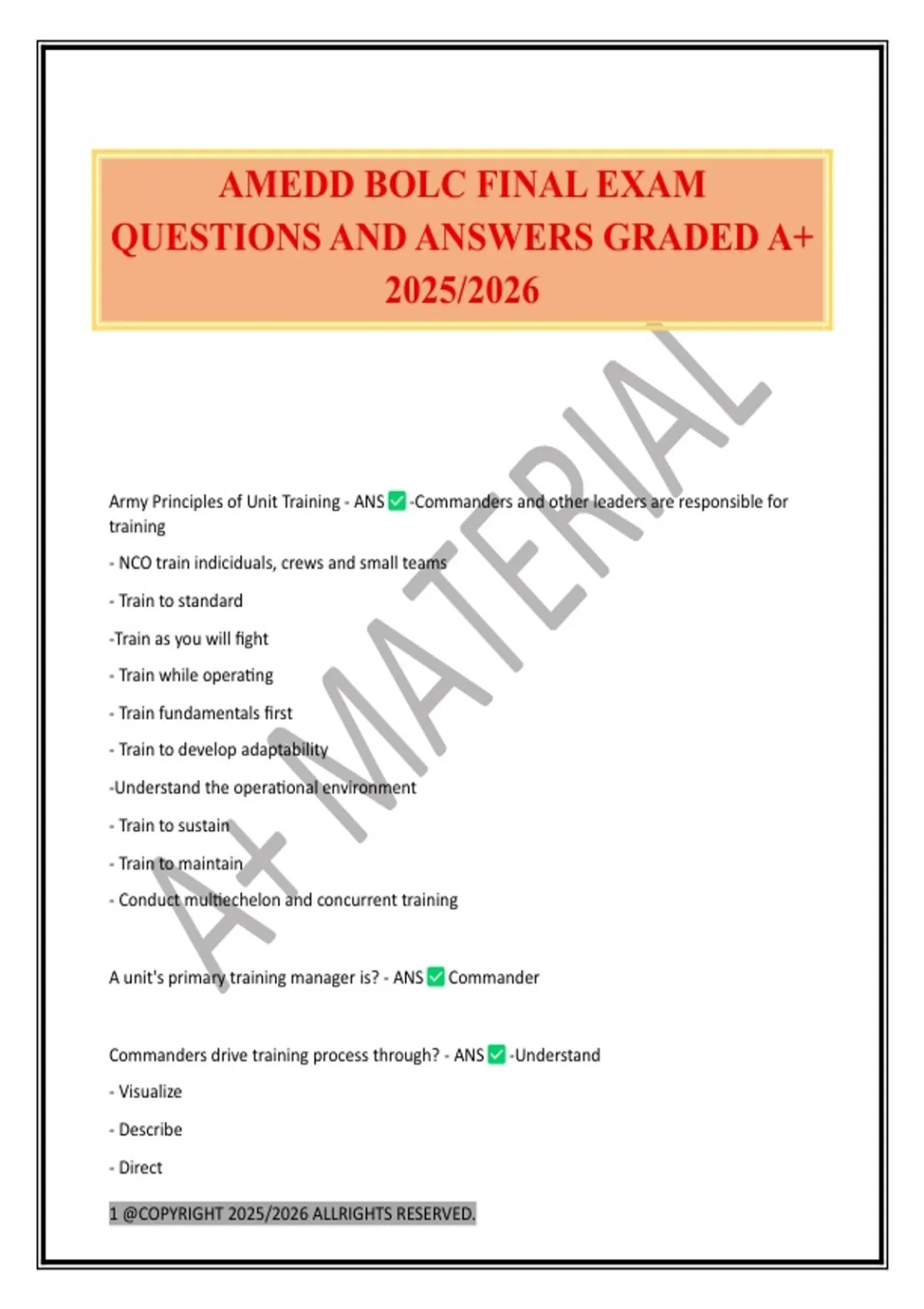 AMEDD BOLC FINAL EXAM