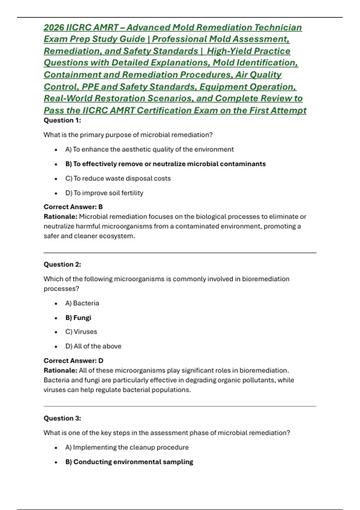 2026 IICRC AMRT – Advanced Mold Remediation Technician Exam Prep Study Guide | Professional Mold Assessment, Remediation, and Safety Standards | High-Yield Practice Questions with Detailed Explanations, Mold Identification, Containment and Remediation Procedures, Air Quality Control, PPE and Safety Standards, Equipment Operation, Real-World Restoration Scenarios, and Complete Review to Pass the IICRC AMRT Certification Exam on the First Attempt