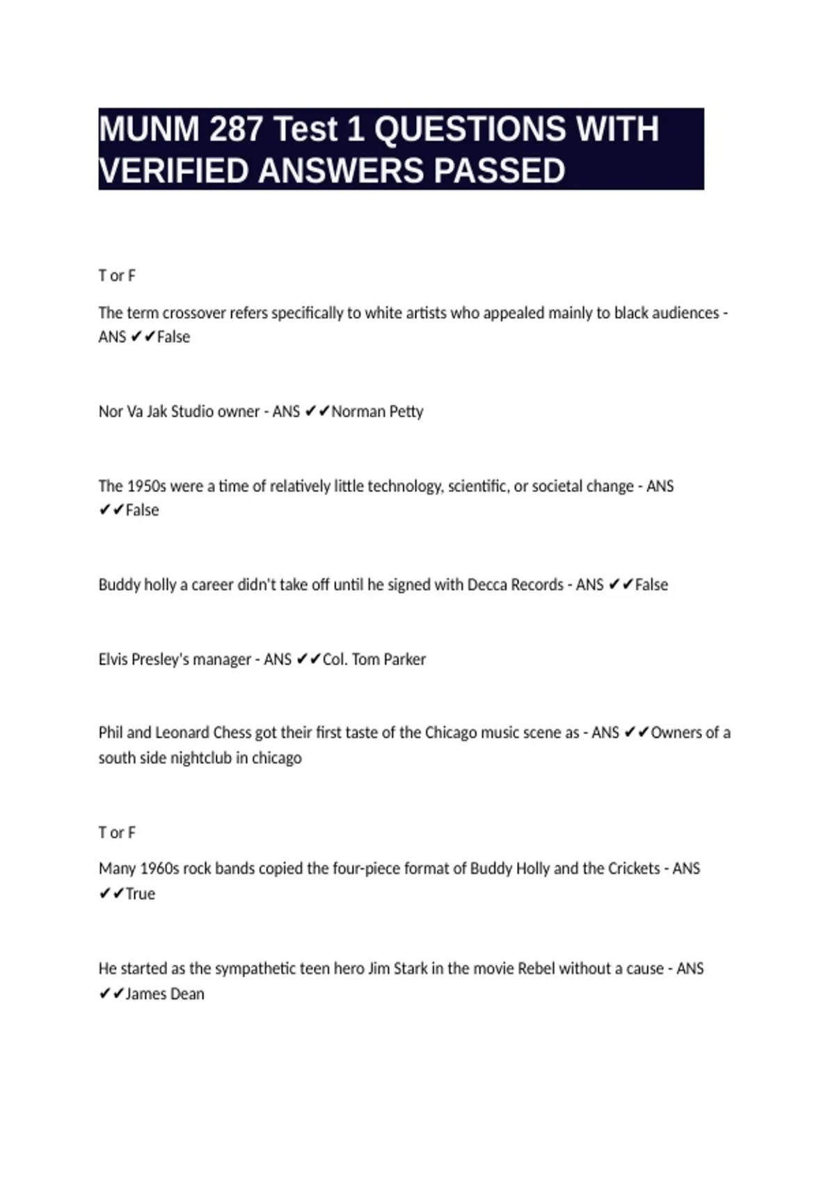 MUNM 287 Test 1 QUESTIONS WITH VERIFIED ANSWERS PASSED