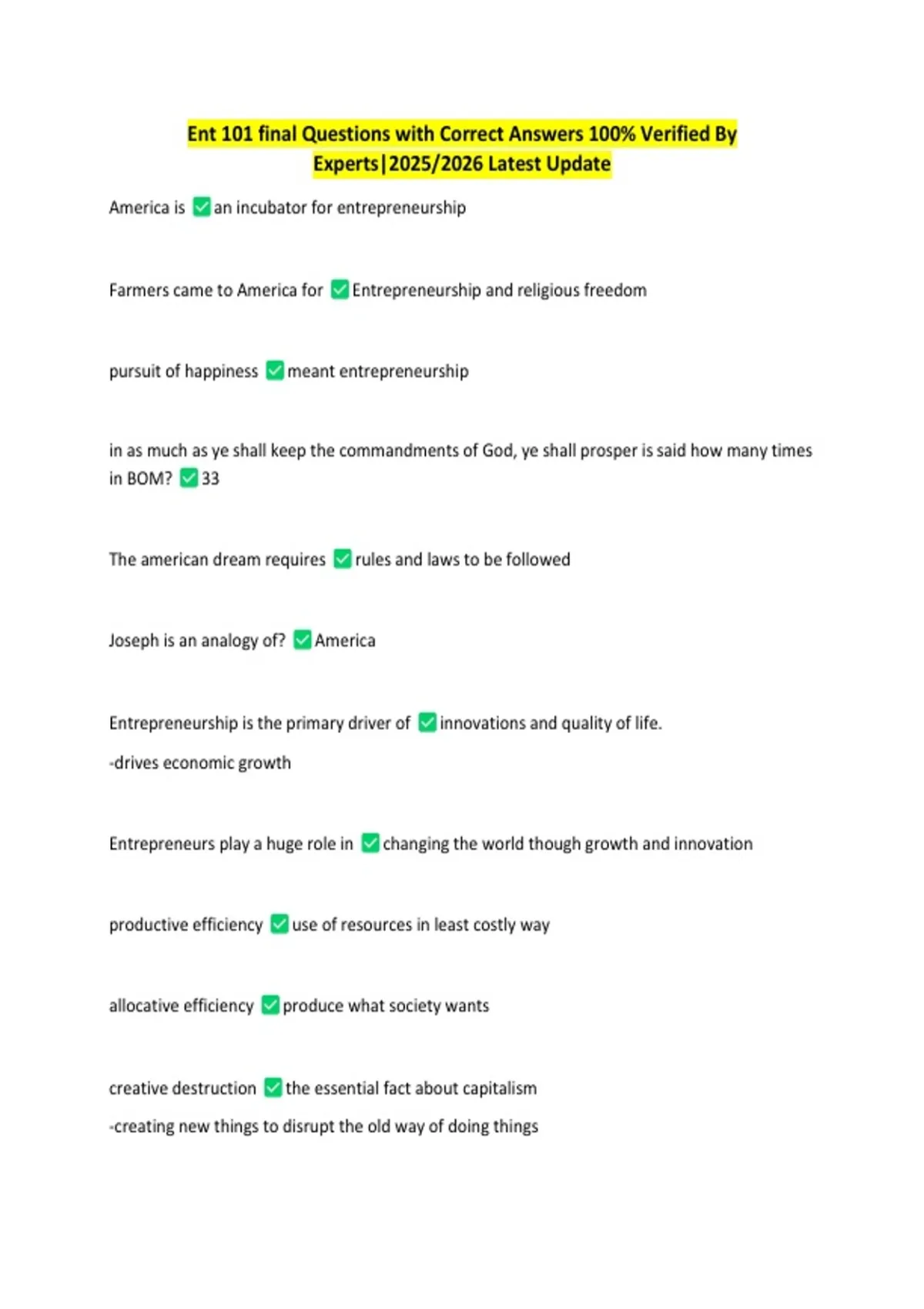 Ent 101 final Questions with Correct Answers 100% Verified By