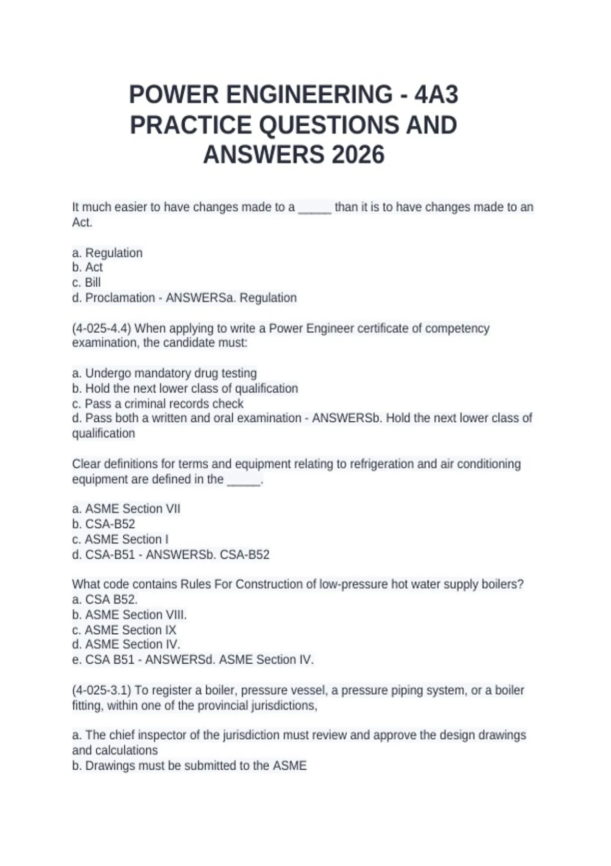 e. CSA B51 - ANSWERSd. ASME Section IV.