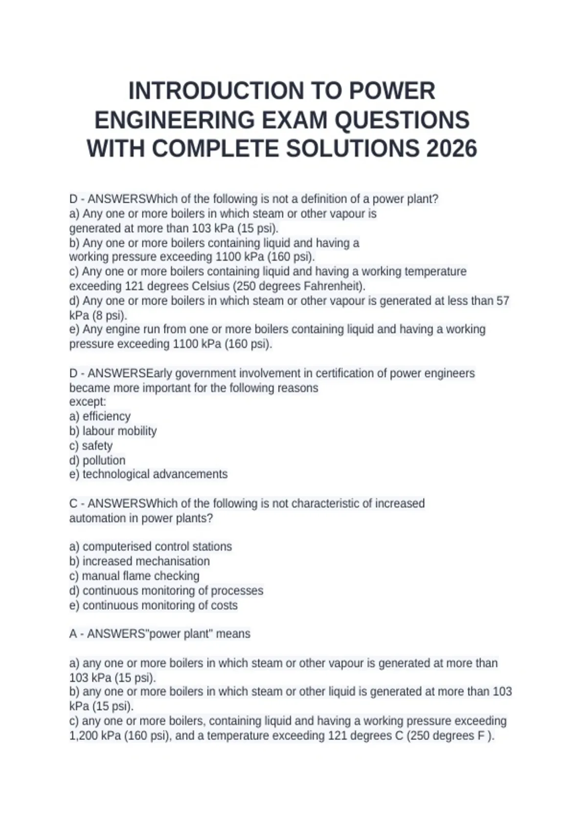 D - ANSWERSWhich of the following is not a definition of a power plant?