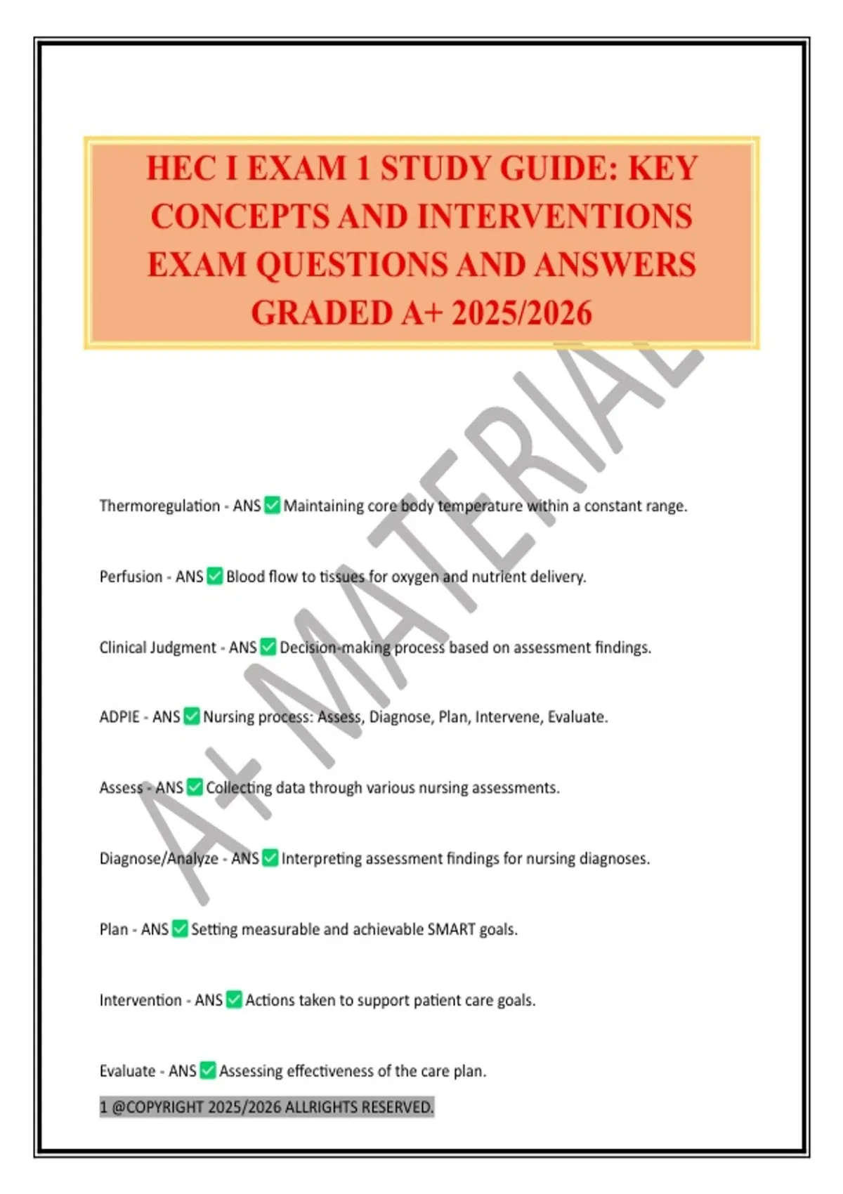 HEC I EXAM 1 STUDY GUIDE: KEY CONCEPTS AND INTERVENTIONS EXAM QUESTIONS AND ANSWERS GRADED A+ 2025/2026