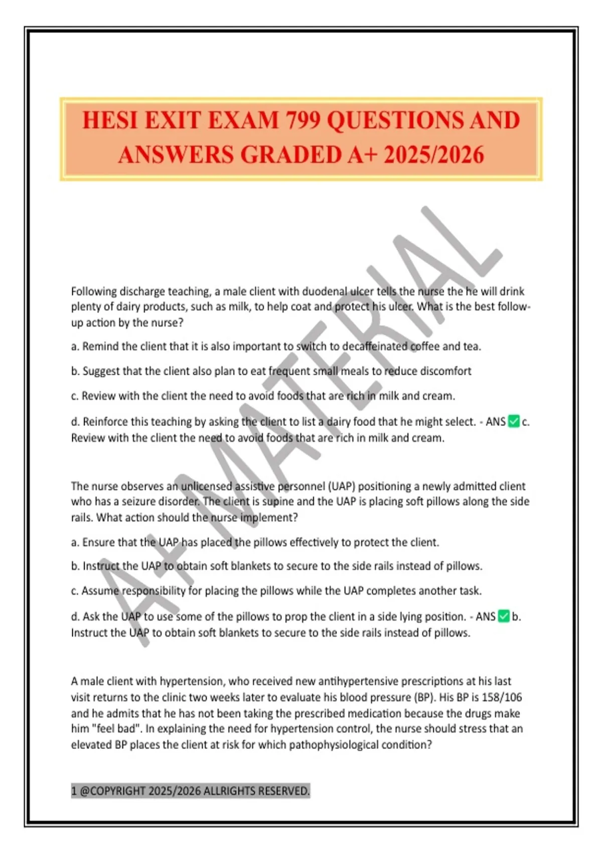 HESI EXIT EXAM 799 QUESTIONS AND