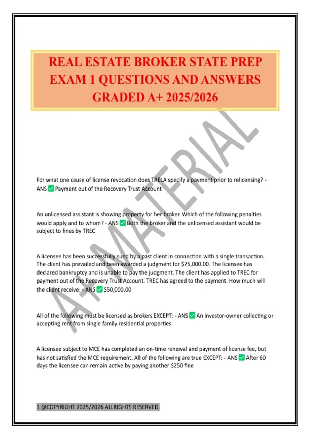 REAL ESTATE BROKER STATE PREP EXAM 1 QUESTIONS AND ANSWERS GRADED A+ 2025/2026