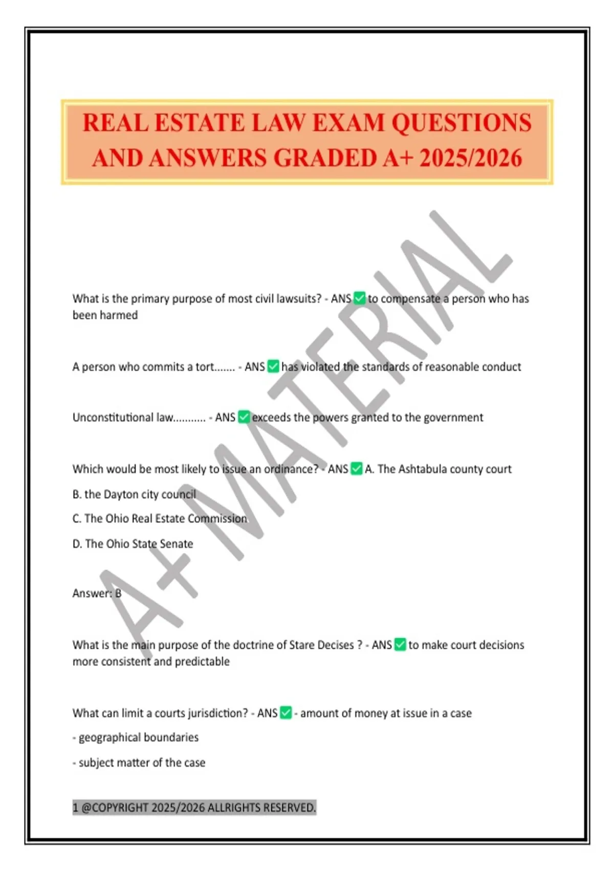 REAL ESTATE LAW EXAM QUESTIONS AND ANSWERS GRADED A+ 2025/2026