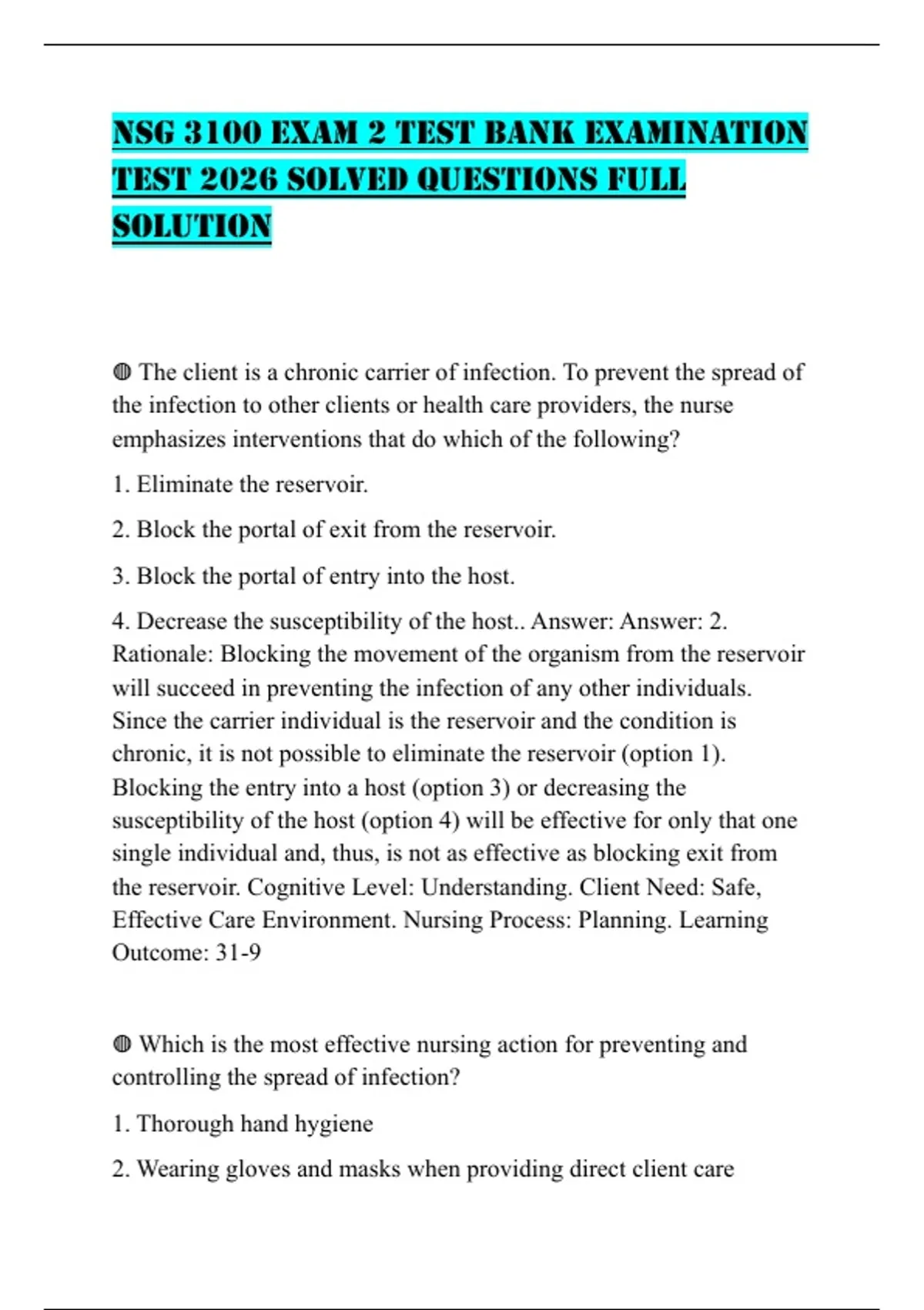 NSG 3100 EXAM 2 TEST BANK EXAMINATION TEST 2026 SOLVED QUESTIONS FULL SOLUTION