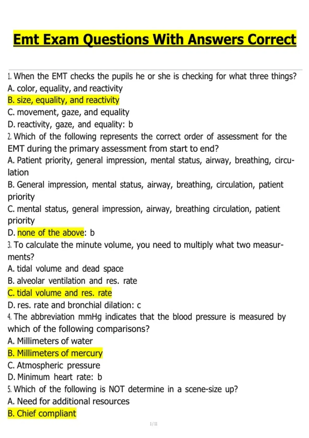 Emt Exam Questions With Answers Correct