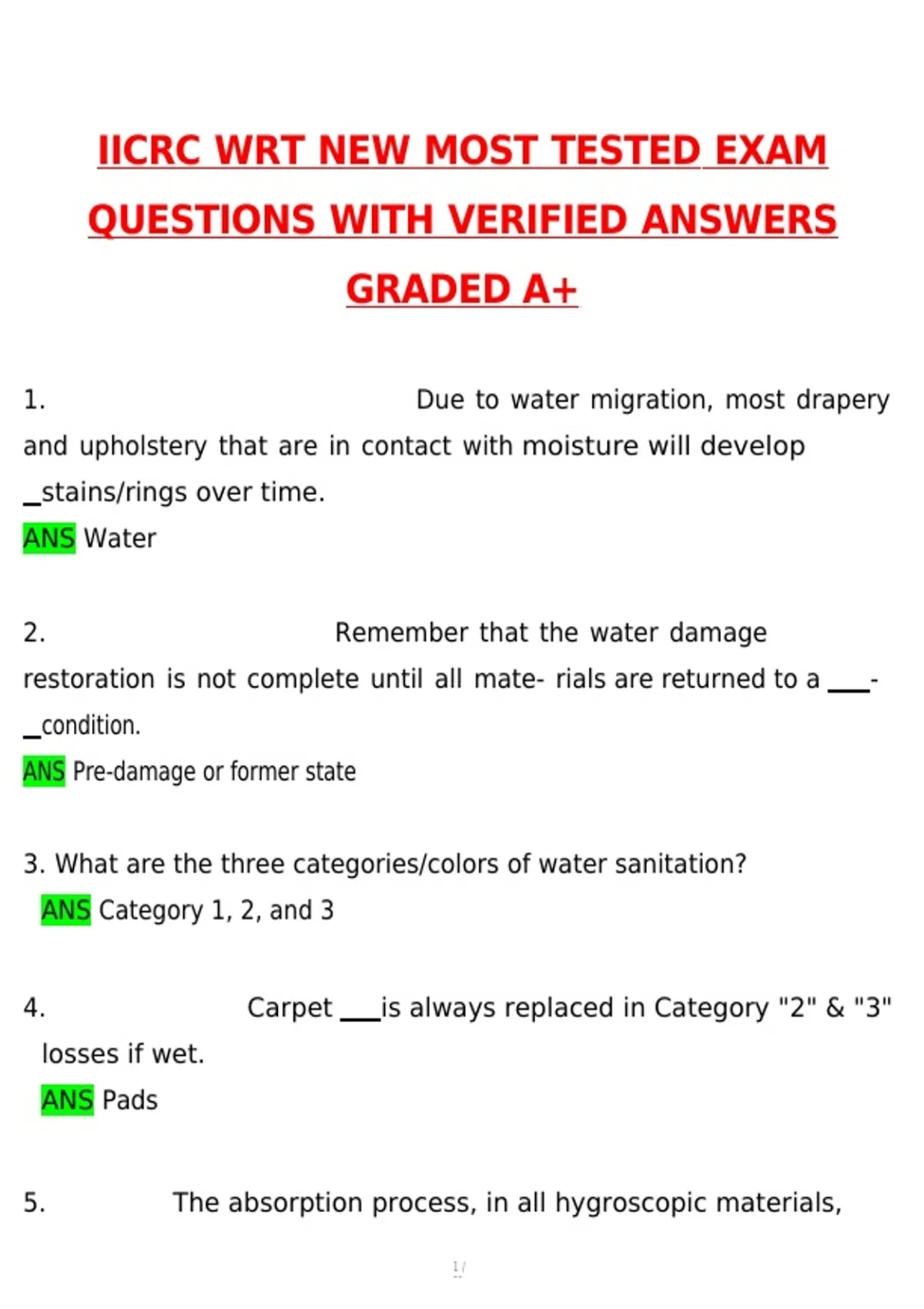 IICRC WRT 2026 NEW MOST TESTED EXAM Actual 2026 Questions and Verified Answers (2026 / 2027) A+ Grade Complete IICRC WRT 2026 Exam, IICRC Water Restoration Course Questions and Answers PDF, IICRC Study Guide 2026/2027, Verified IICRC Exam Elaborations, IICRC WRT 2026 New Most Tested Exam Questions, IICRC WRT Certification Exam, Water Restoration Exam IICRC, IICRC OCT Course 2026 Practice Questions, Actual 2026 Questions and Verified Answers, A+ Grade Complete IICRC Study Materials, IICRC WRT Exam Practice PDF, IICRC Water Restoration Study Notes, Complete IICRC WRT Exam Solutions, Step-by-Step IICRC Exam Answers, Comprehensive IICRC Exam Review, IICRC WRT Exam Prep 2026/2027, IICRC Verified Answer Key, Instant Access IICRC WRT PDF, IICRC Certification Exam Guide, Updated 2026/2027 IICRC Exam Prep, IICRC WRT Exam Success Guide, Complete Water Restoration Study Materials