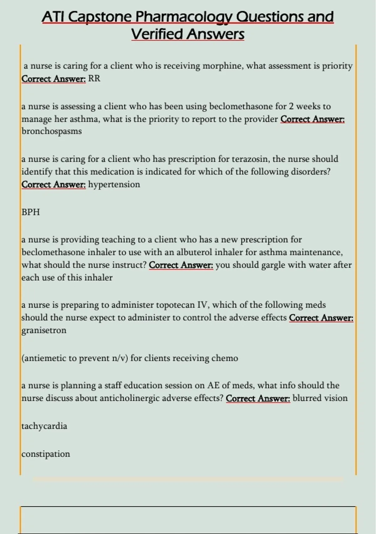 ATI Capstone Pharmacology Questions and
