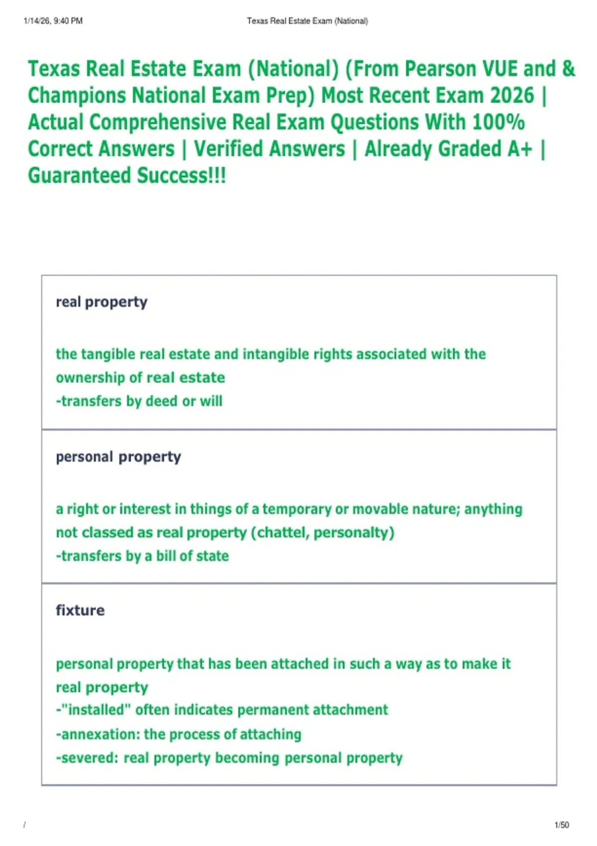 , 1/14/26, 9:40 PM Texas Real Estate Exam (National)