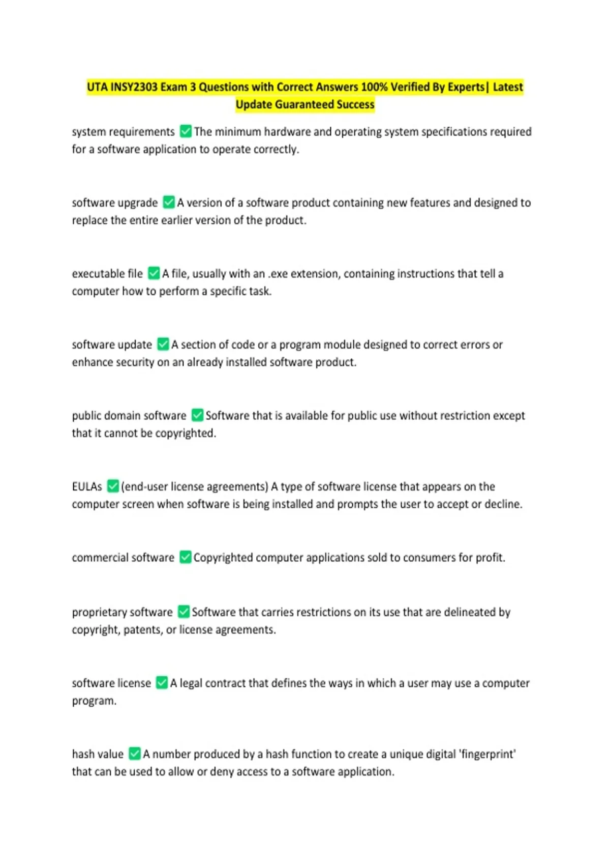 UTA INSY2303 Exam 3 Questions with Correct Answers 100% Verified By Experts| Latest