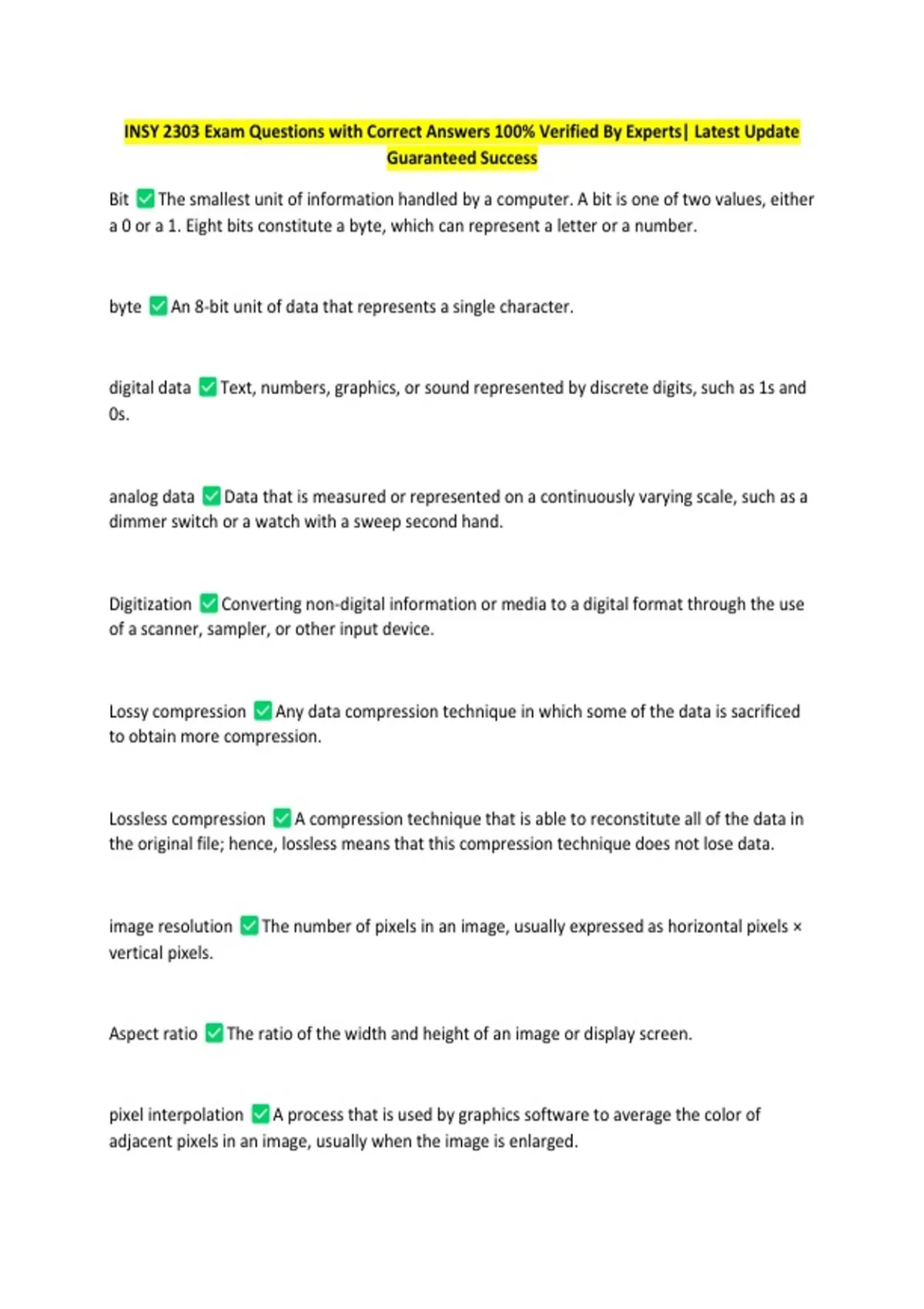 INSY 2303 Exam Questions with Correct Answers 100% Verified By Experts| Latest Update