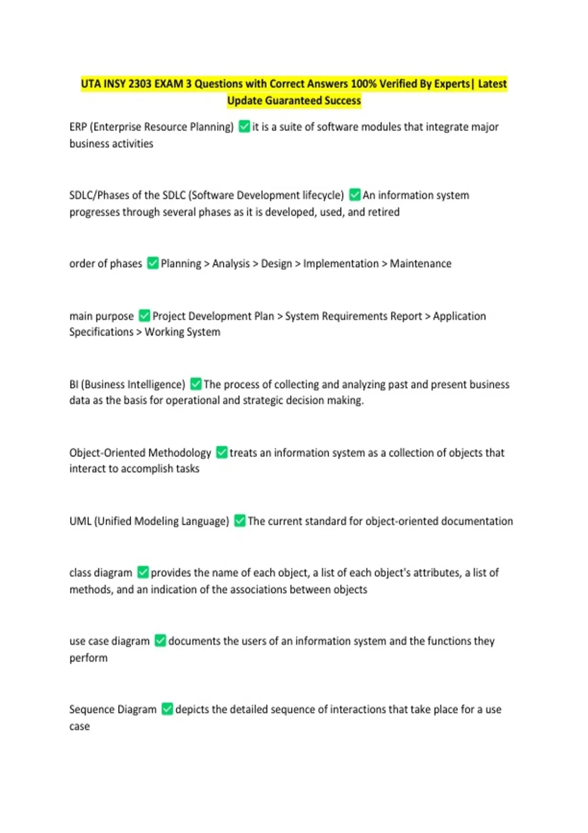 UTA INSY 2303 EXAM 3 Questions with Correct Answers 100% Verified By Experts