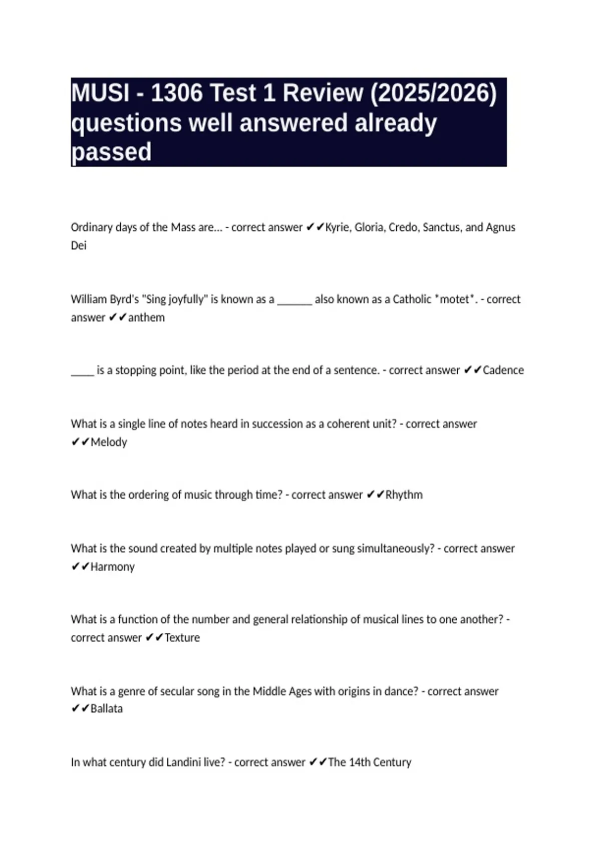 In what century did Landini live? - correct answer ✔✔The 14th Century