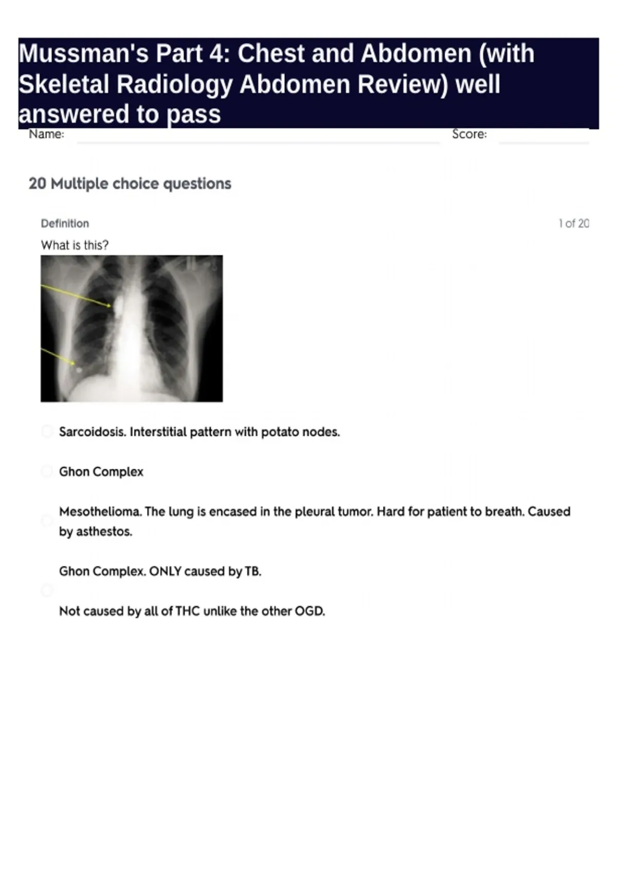 Mussman's Part 4: Chest and Abdomen (with Skeletal Radiology Abdomen Review) well answered to pass