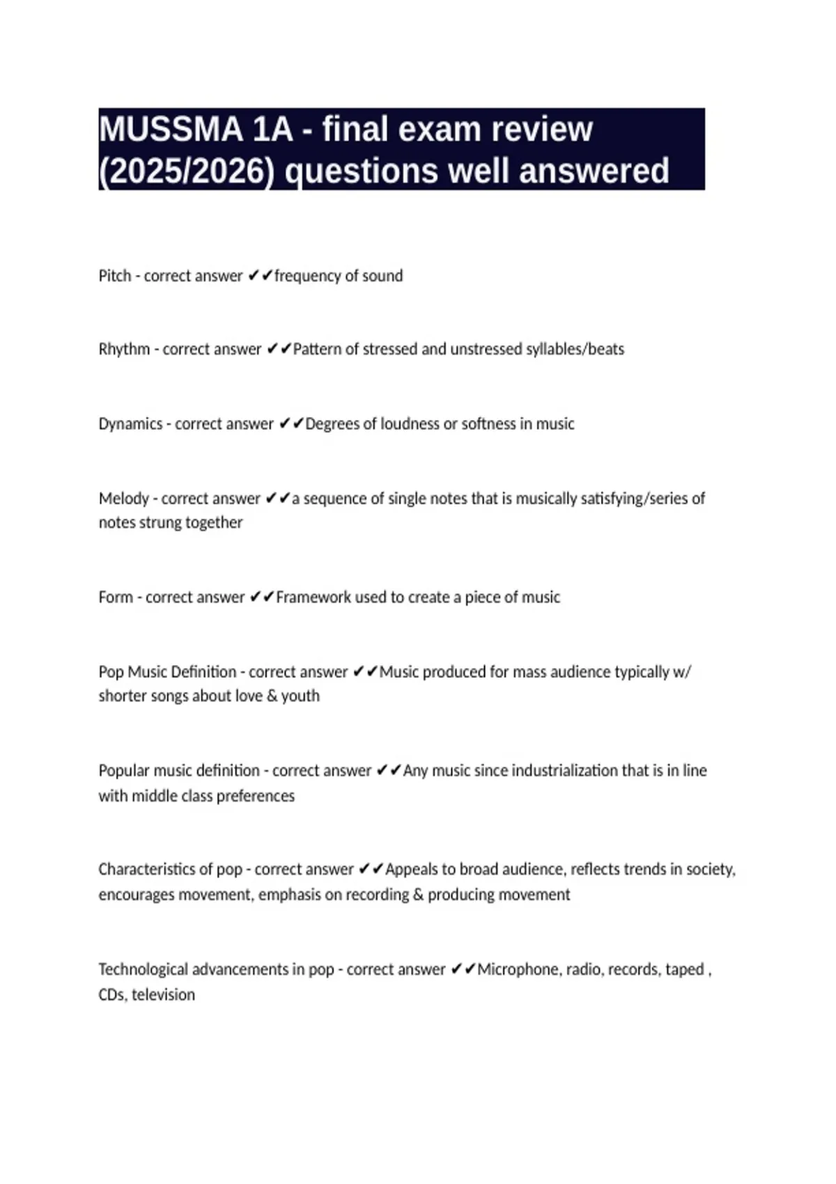 MUSSMA 1A - final exam review (2025/2026) questions well answered
