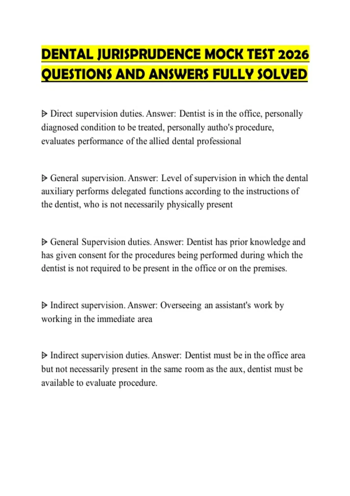 DENTAL JURISPRUDENCE MOCK TEST 2026 QUESTIONS AND ANSWERS FULLY SOLVED