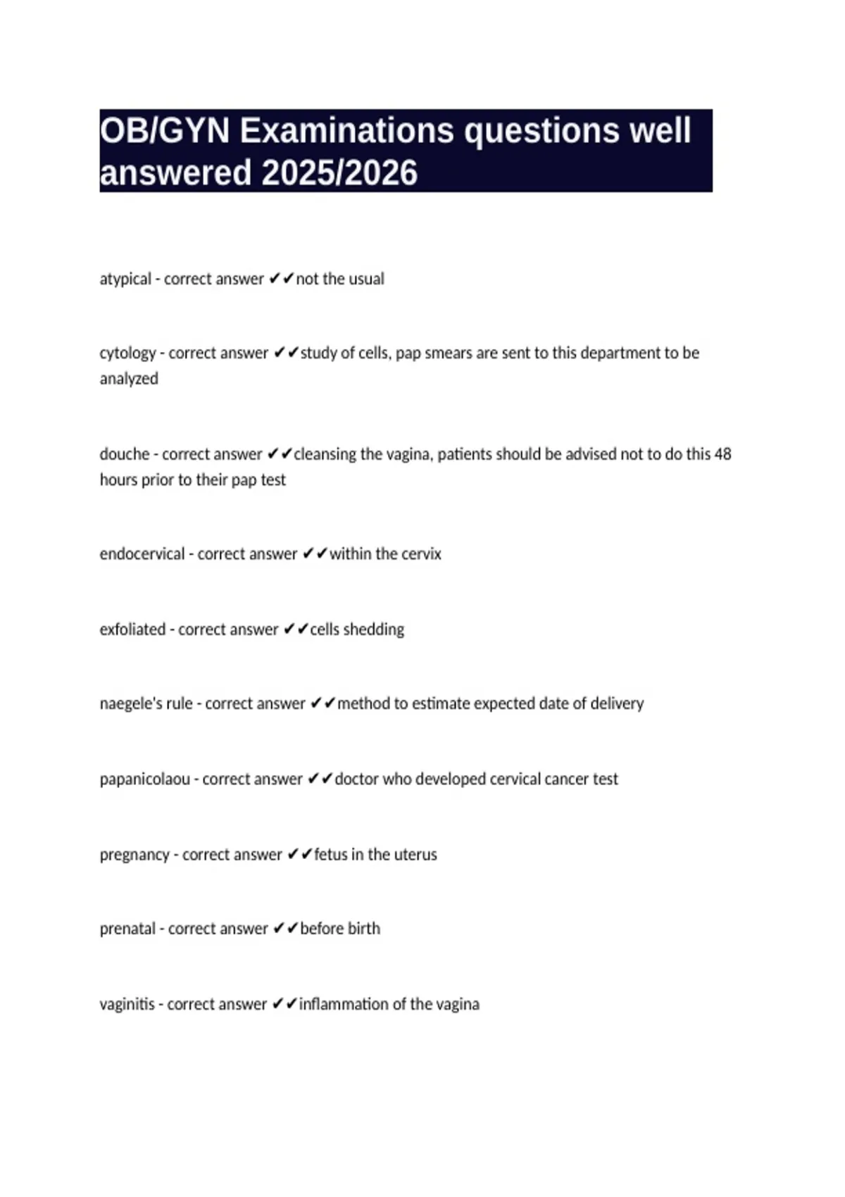 OB/GYN Examinations questions well