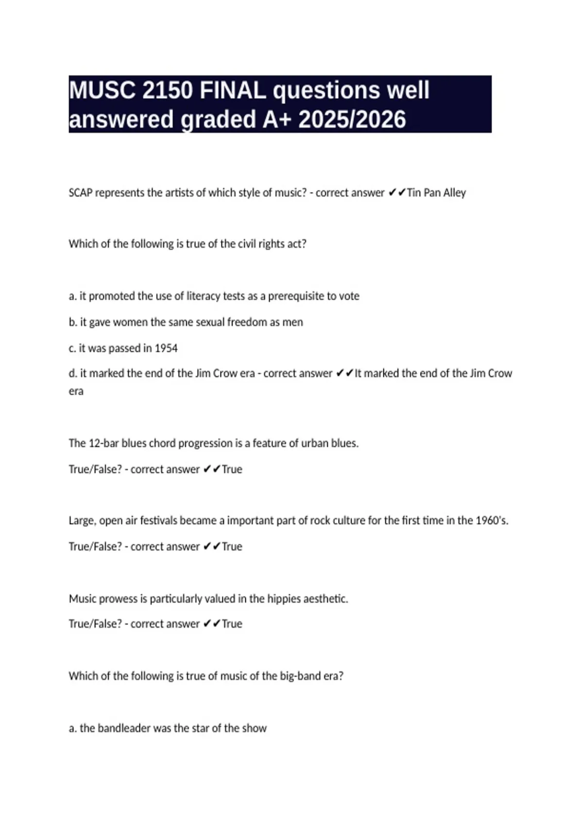 MUSC 2150 FINAL questions well answered graded A+ 2025/2026