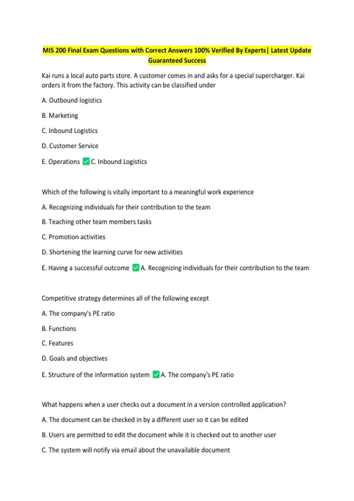 MIS 200 Final Exam Questions with Correct Answers 100% Verified By Experts| Latest Update