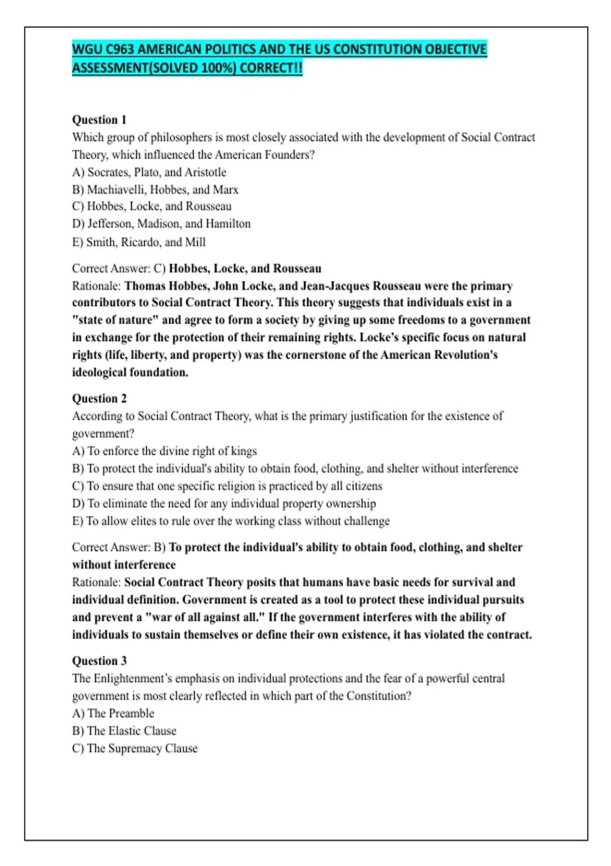 Rationale: Thomas Hobbes, John Locke, and Jean-Jacques Rousseau were the primary