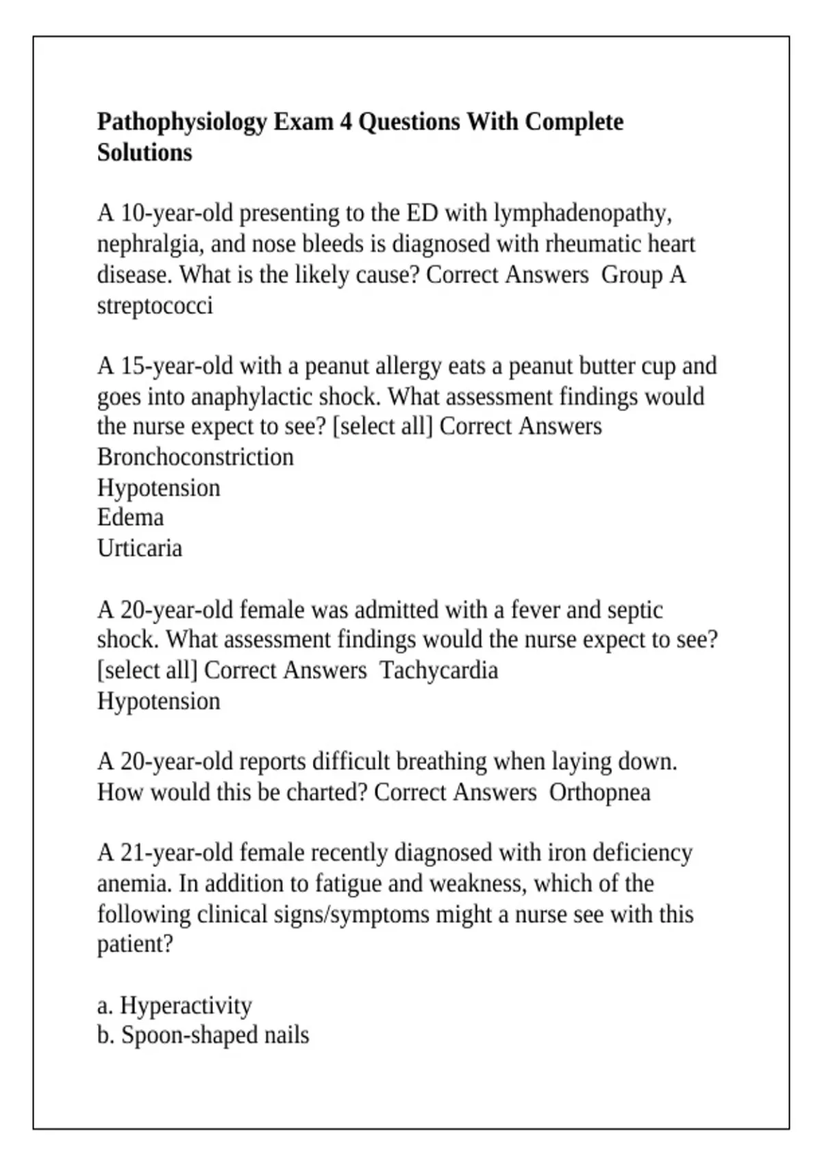 Pathophysiology Exam 4 Questions With Complete Solutions