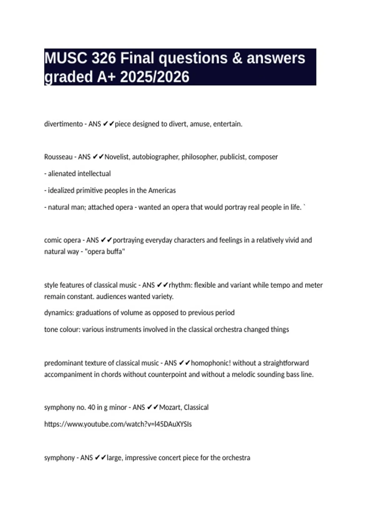 MUSC 326 Final questions & answers graded A+ 2025/2026
