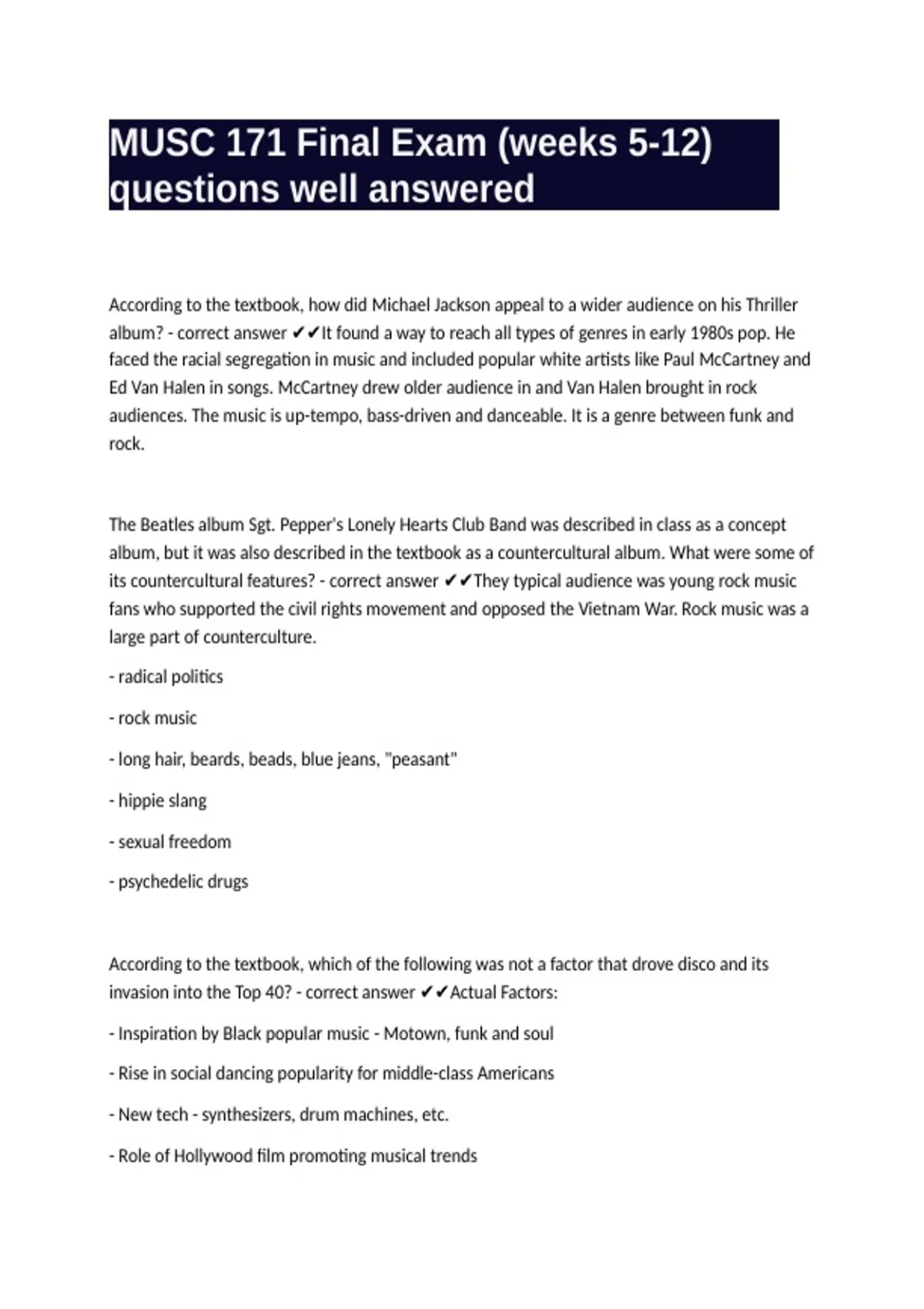 MUSC 171 Final Exam (weeks 5-12) questions well answered