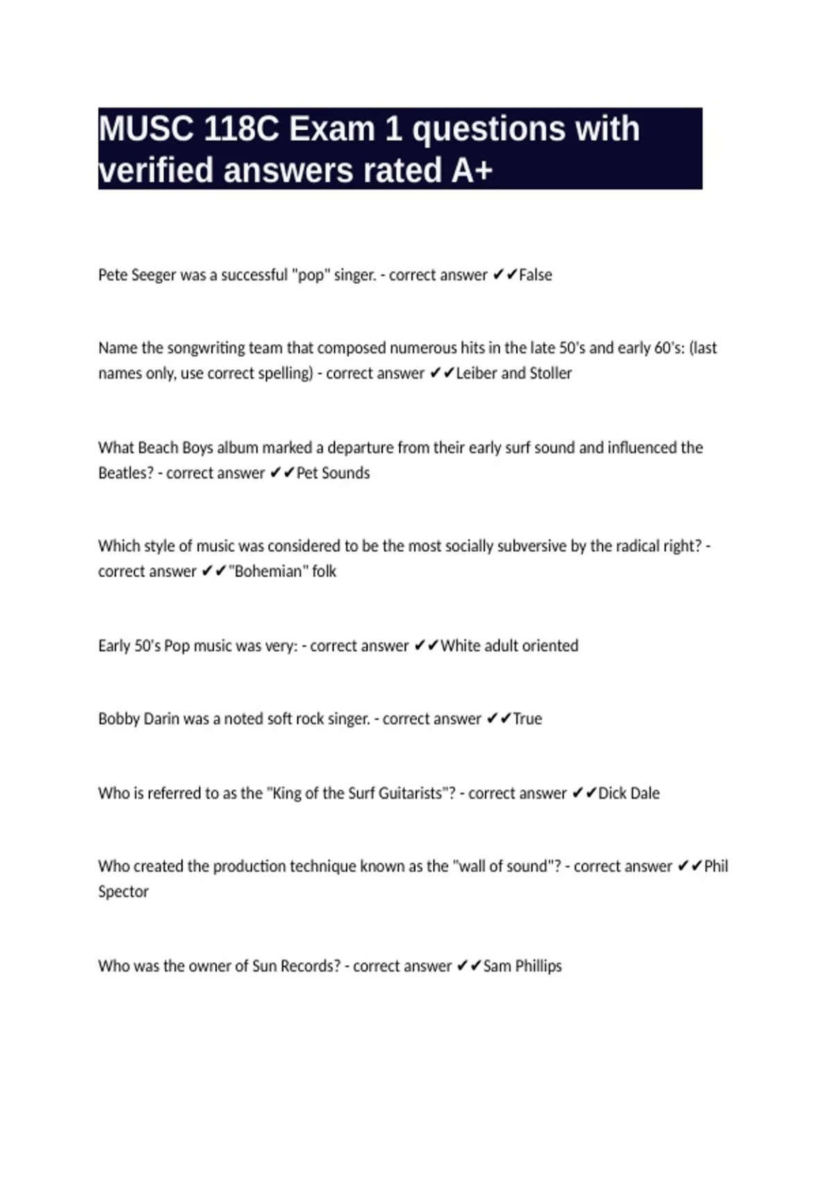 MUSC 118C Exam 1 questions with verified answers rated A+