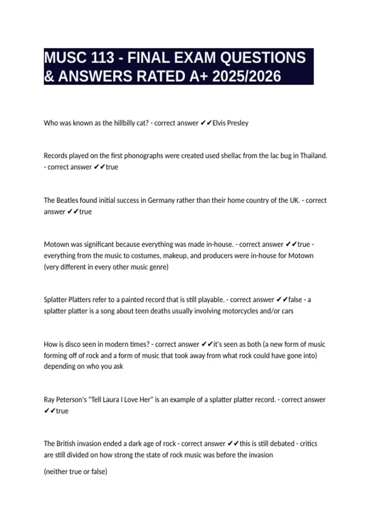 MUSC 113 - FINAL EXAM QUESTIONS & ANSWERS RATED A+ 2025/2026