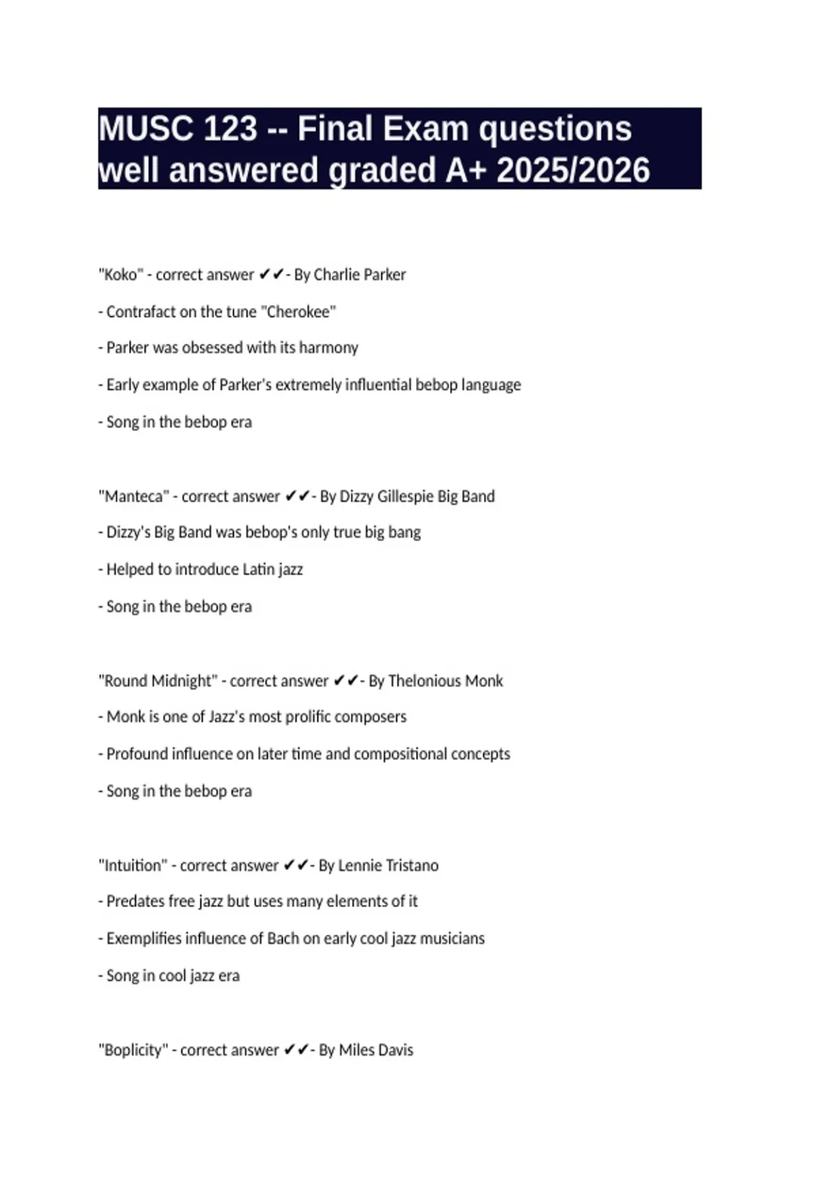 MUSC 123 -- Final Exam questions well answered graded A+ 2025/2026