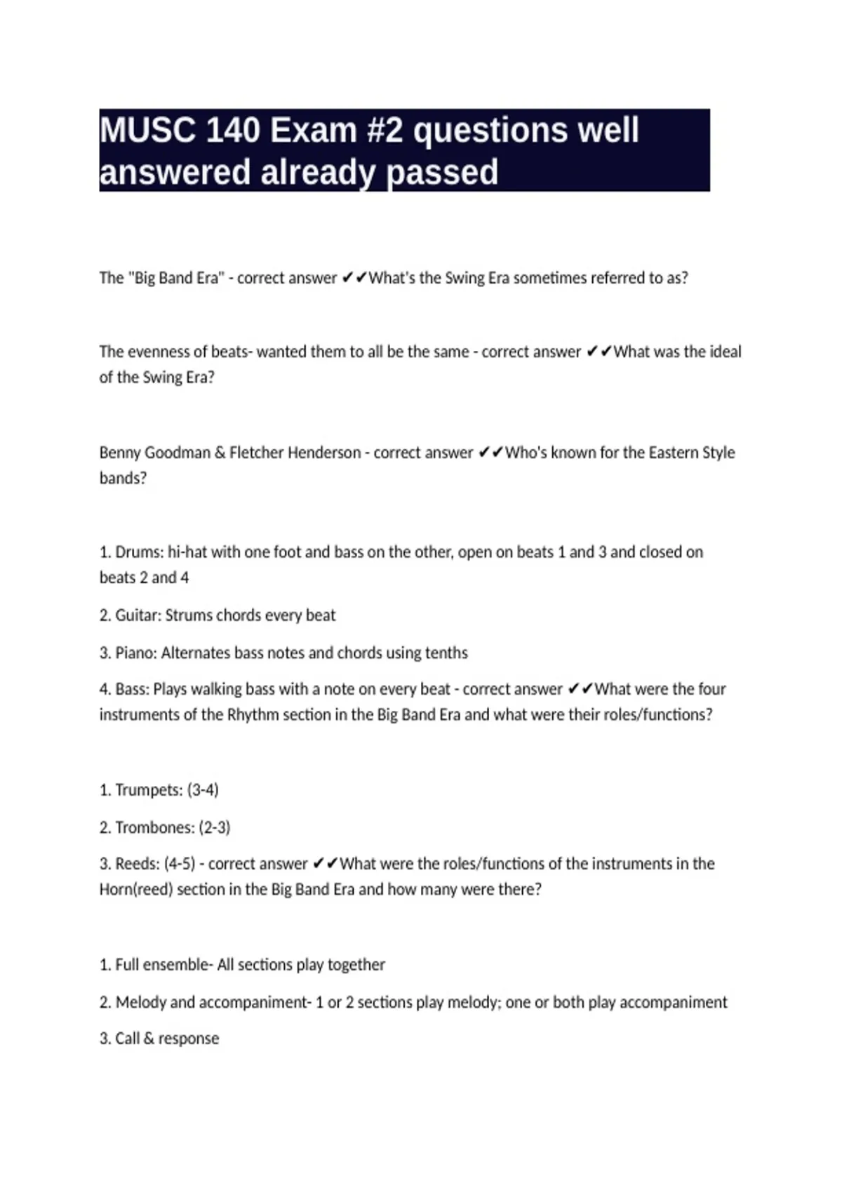 MUSC 140 Exam #2 questions well answered already passed