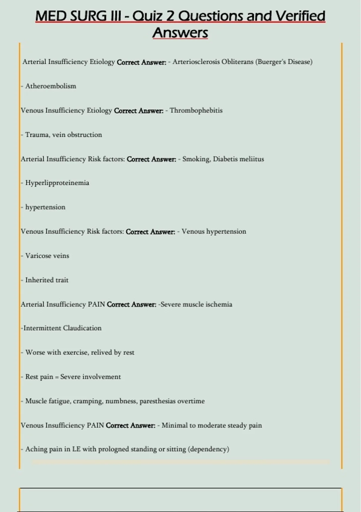 Arterial Insufficiency PAIN Correct Answer: -Severe muscle ischemia